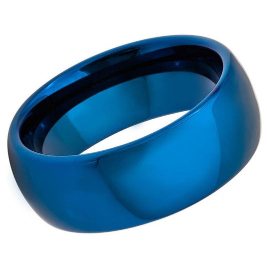 Domed Blue IP Plated Shiny Finish Tungsten Ring – 8 mm