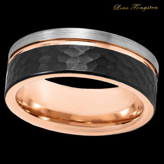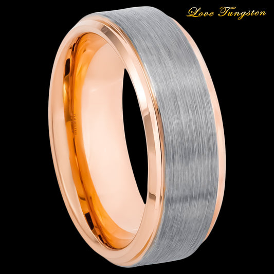 Rose Gold IP Gunmetal Center Brushed Tungsten Ring - 8mm | Elegant Design
