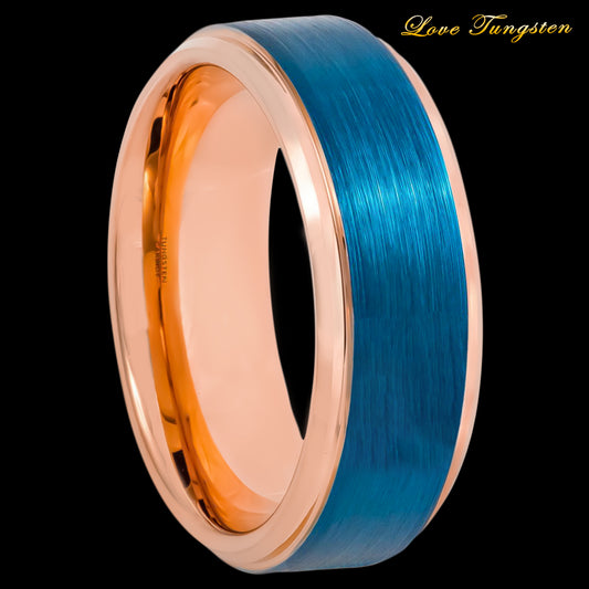 Two-tone Rose & Blue IP Stepped Edge Tungsten Ring – 8 mm