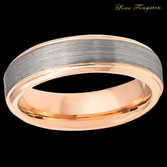 6mm Gunmetal Tungsten Ring with Rose Gold IP Brushed Finish | Modern & Durable