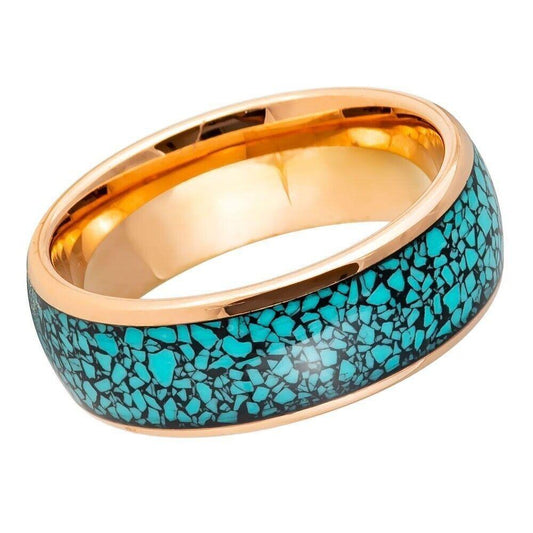 Rose Gold IP Crushed Blue Turquoise Inlay Tungsten Ring - 8mm | Stunning & Durable