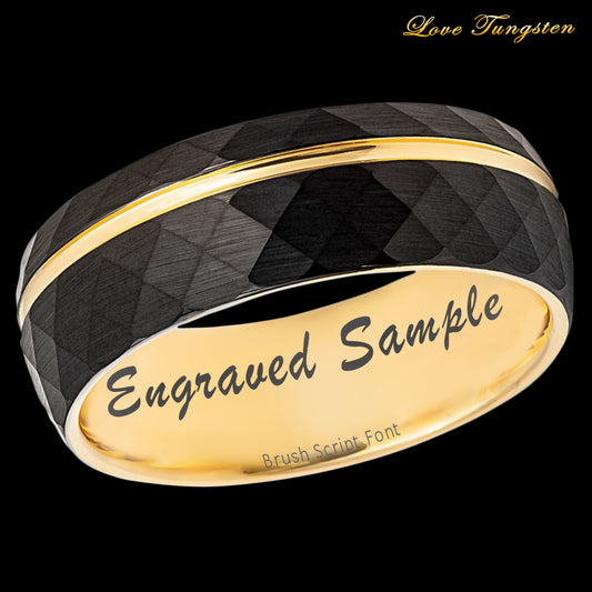 Brushed Yellow Gold & Faceted Black IP Tungsten Ring - 8mm