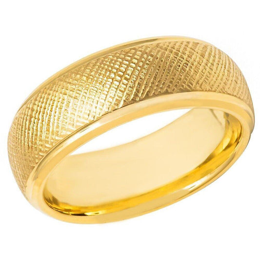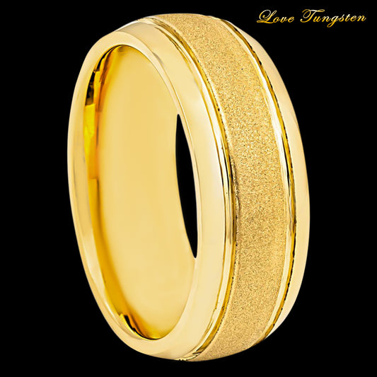 Sandstone Finish Yellow Gold IP Tungsten Ring – 8 mm