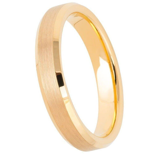Brush Yellow Gold IP Plated Center and Shiny Beveled Edge Tungsten Ring – 4 mm