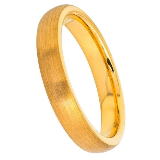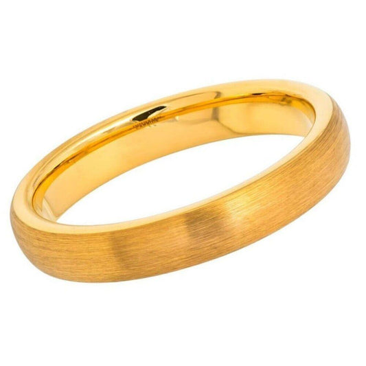 Brushed Domed Classic Style Yellow Gold IP Plated Tungsten Ring – 4 mm