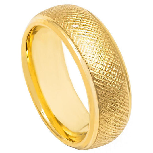 Tungsten Yellow Gold IP Florentine Detailed Finish Domed Stepped Edge Ring - 8mm