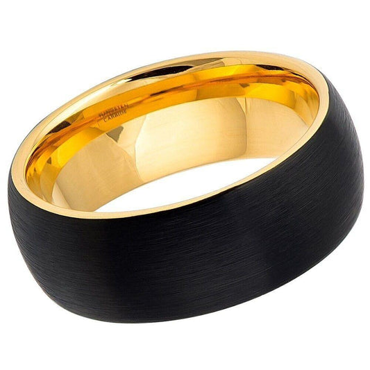 Two-tone Yellow IP & Brushed Black IP Dome Tungsten Ring - 8mm