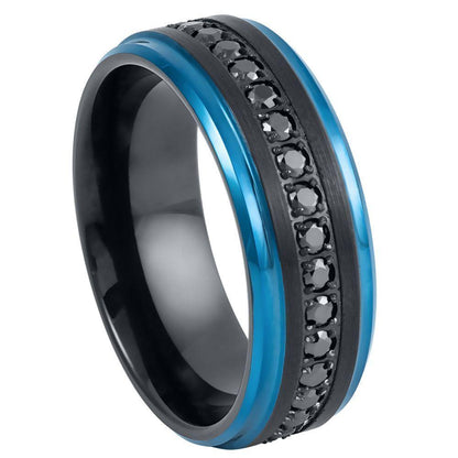 Eternity Black CZ Blue Edges Black IP Tungsten Ring - 8mm