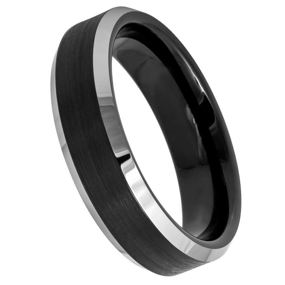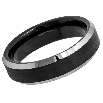 Silver Black Brushed Center Black IP Plated Tungsten Ring - 6mm