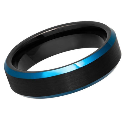 Blue IP Beveled Edge with Black IP Tungsten Ring - 6mm
