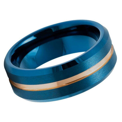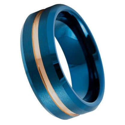 Blue IP Brushed & Rose Gold IP Grooved Tungsten Ring - 8mm