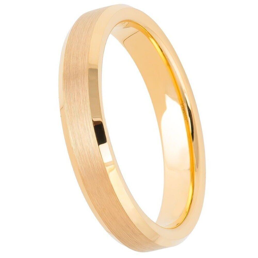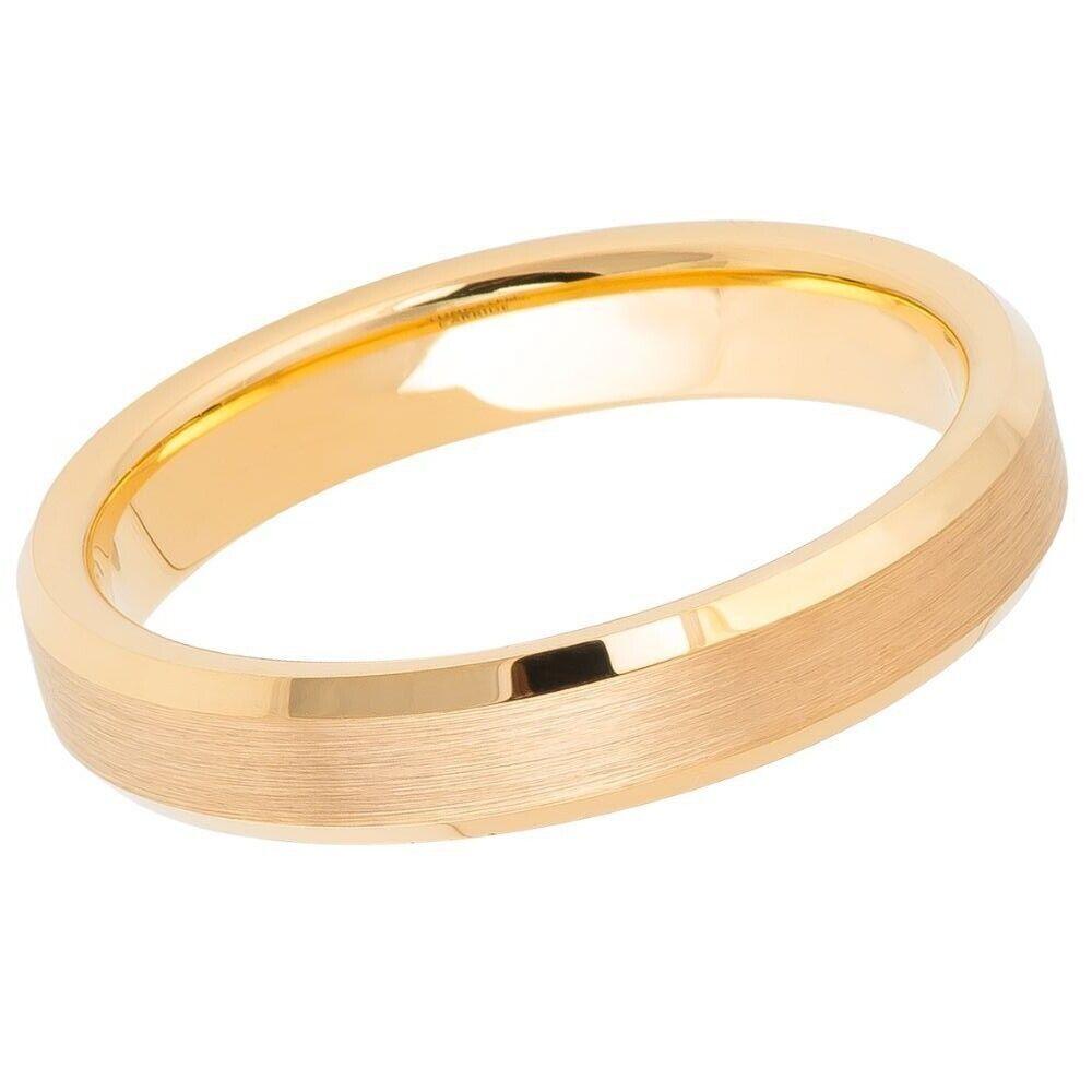 Make a Statement with Our 4mm Brush Gold IP Tungsten Ring: Shiny Beveled Edge and Center Detail