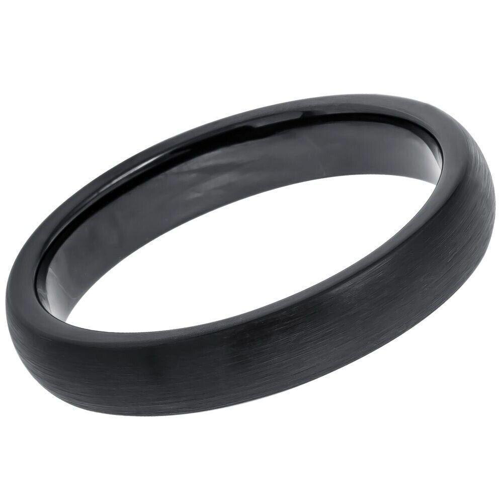 Shop now and discover the enduring style of our 4mm Brushed Black IP Plated Classic Domed Band Tungsten Ring. Experience the perfect combination of style, durability, and comfort in one stunning piece.