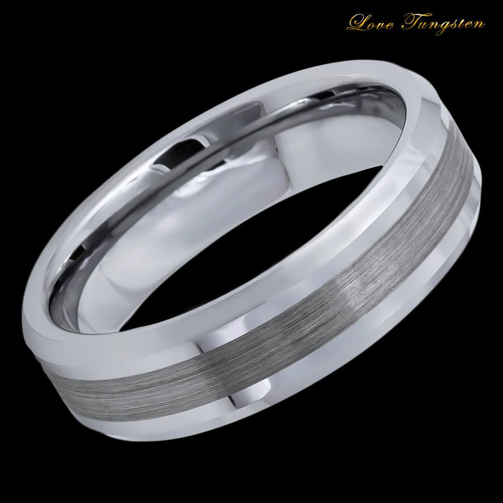 Unleash Your Style with Our Brushed Center High Polished Beveled Edge Tungsten Ring - 6mm