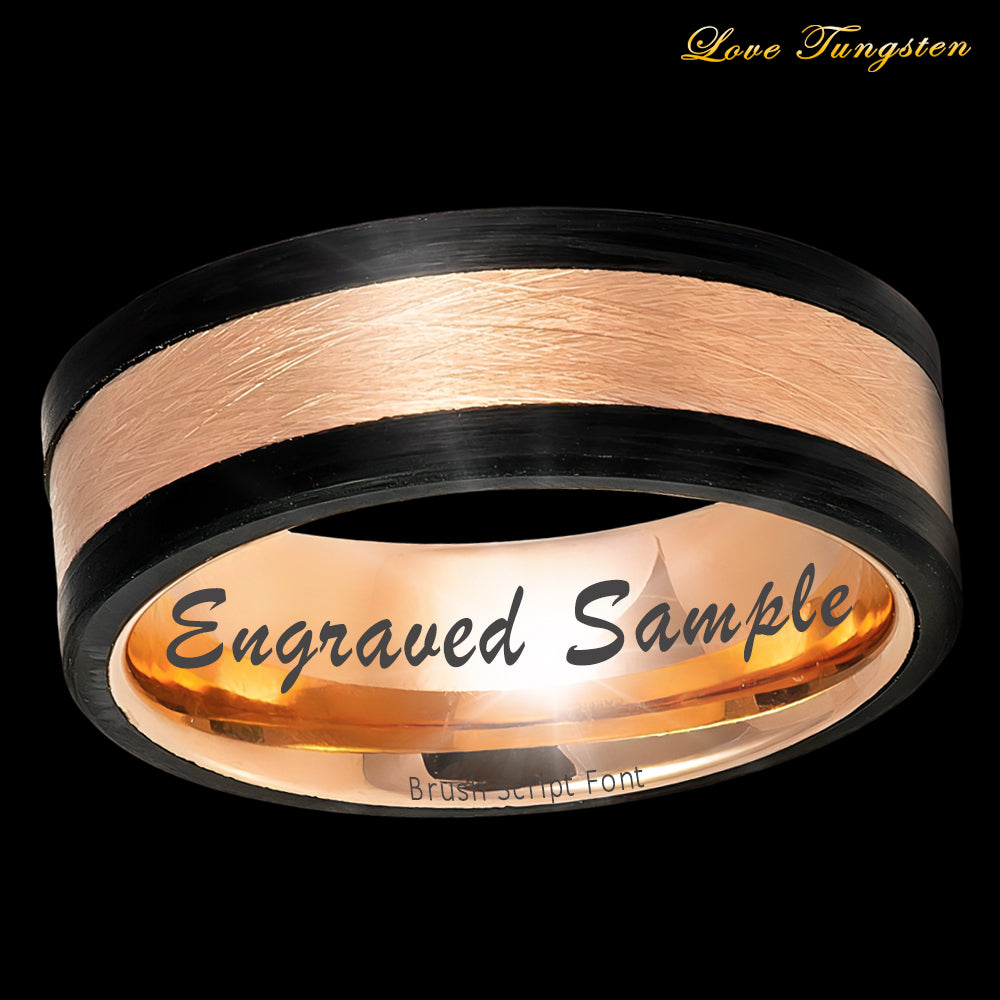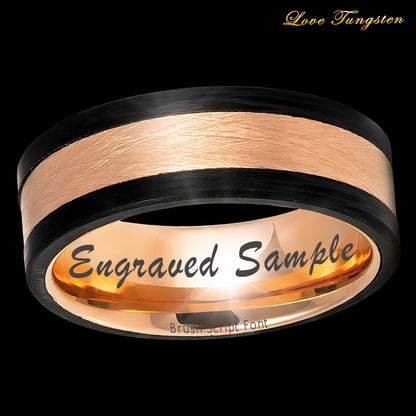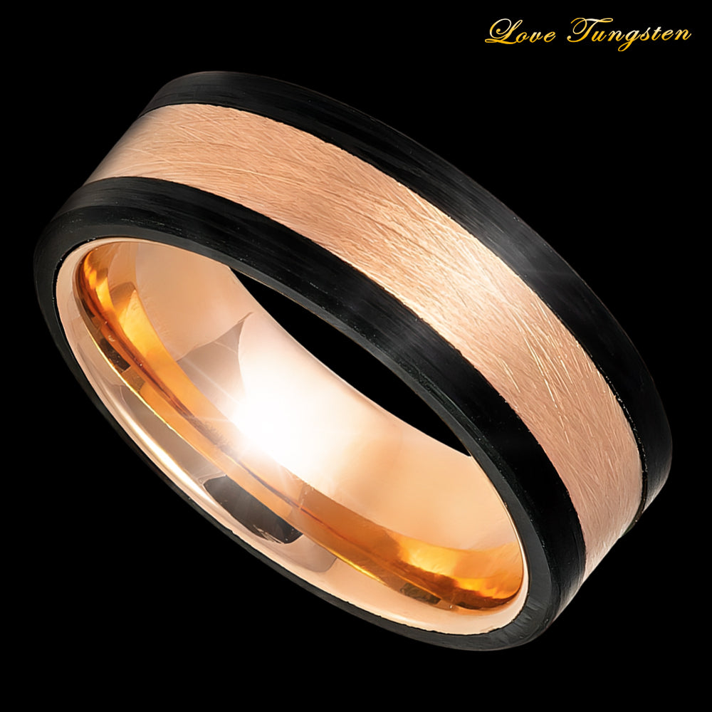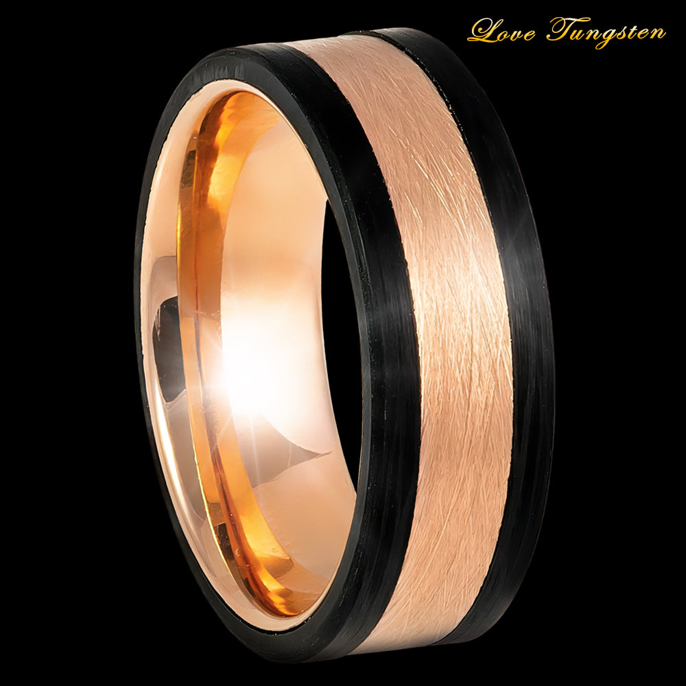 Make a Statement with Our Carbon Fiber Edges & Rose Gold Tungsten Ring - 8mm!