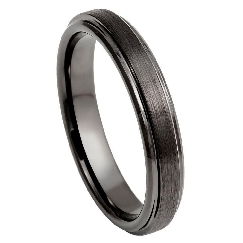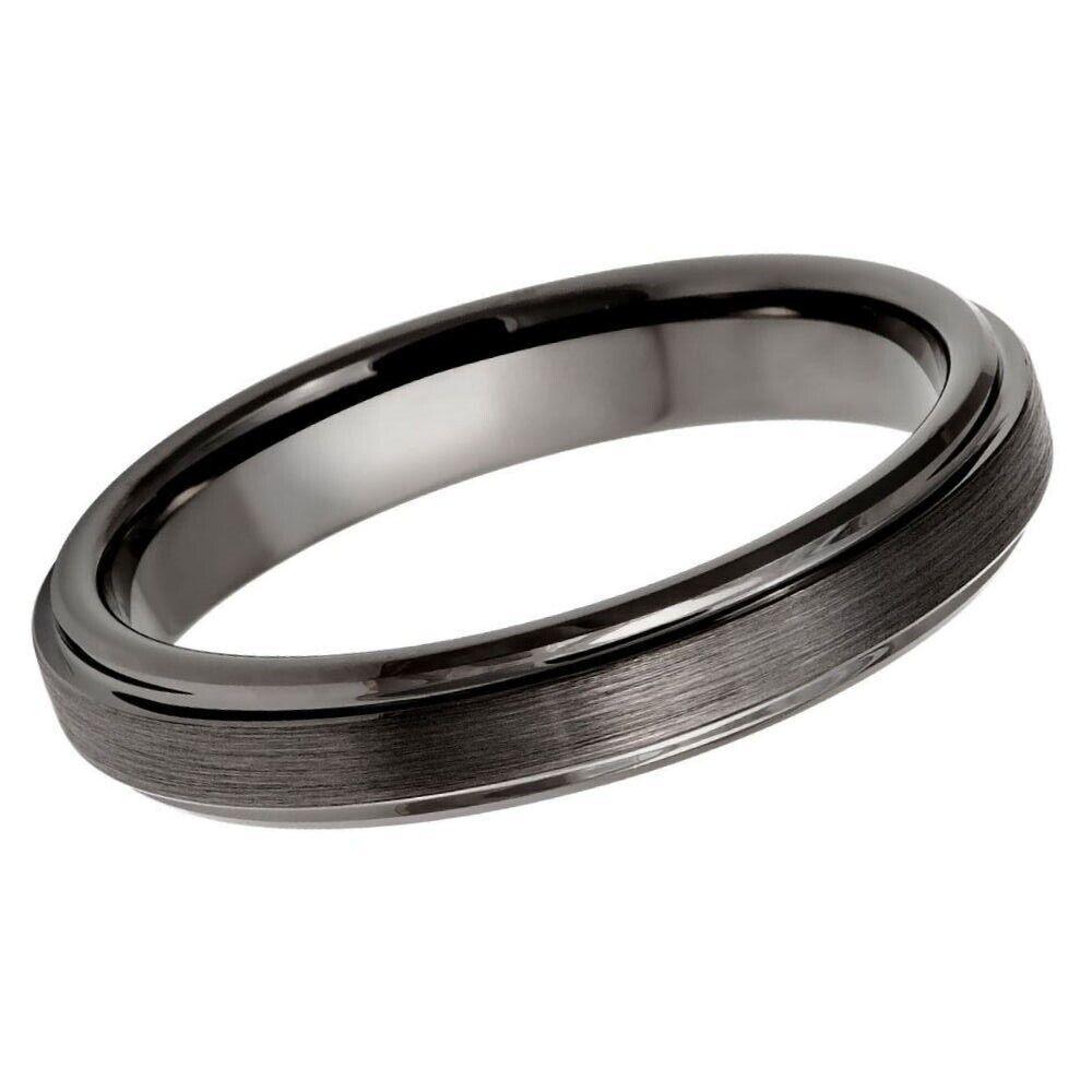 Make a Statement with Our 4mm Gun Metal IP Brushed Center Tungsten Ring