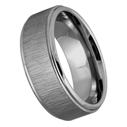Reflective Grain Finish Stepped Edge Tungsten Ring - 8mm