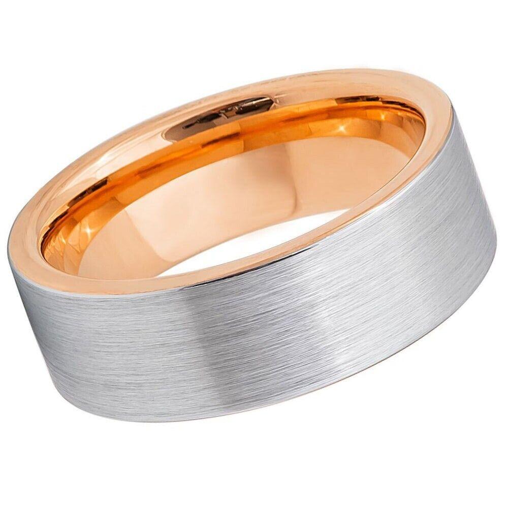 8mm Rose Gold & White Brushed Tungsten Ring | Love Tungsten