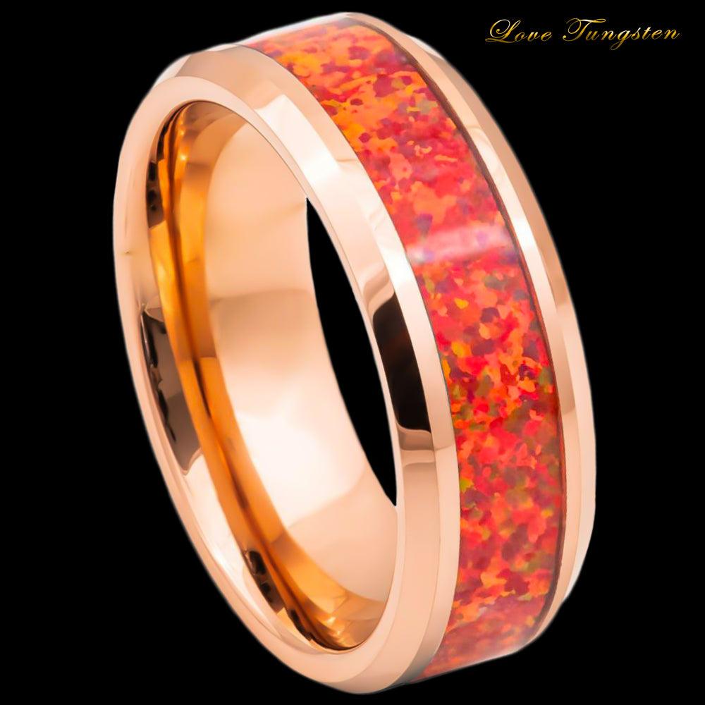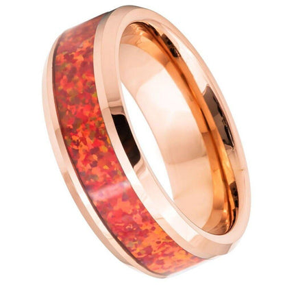 Red Fire Opal Inlay with Rose Gold IP Tungsten Ring - 8mm