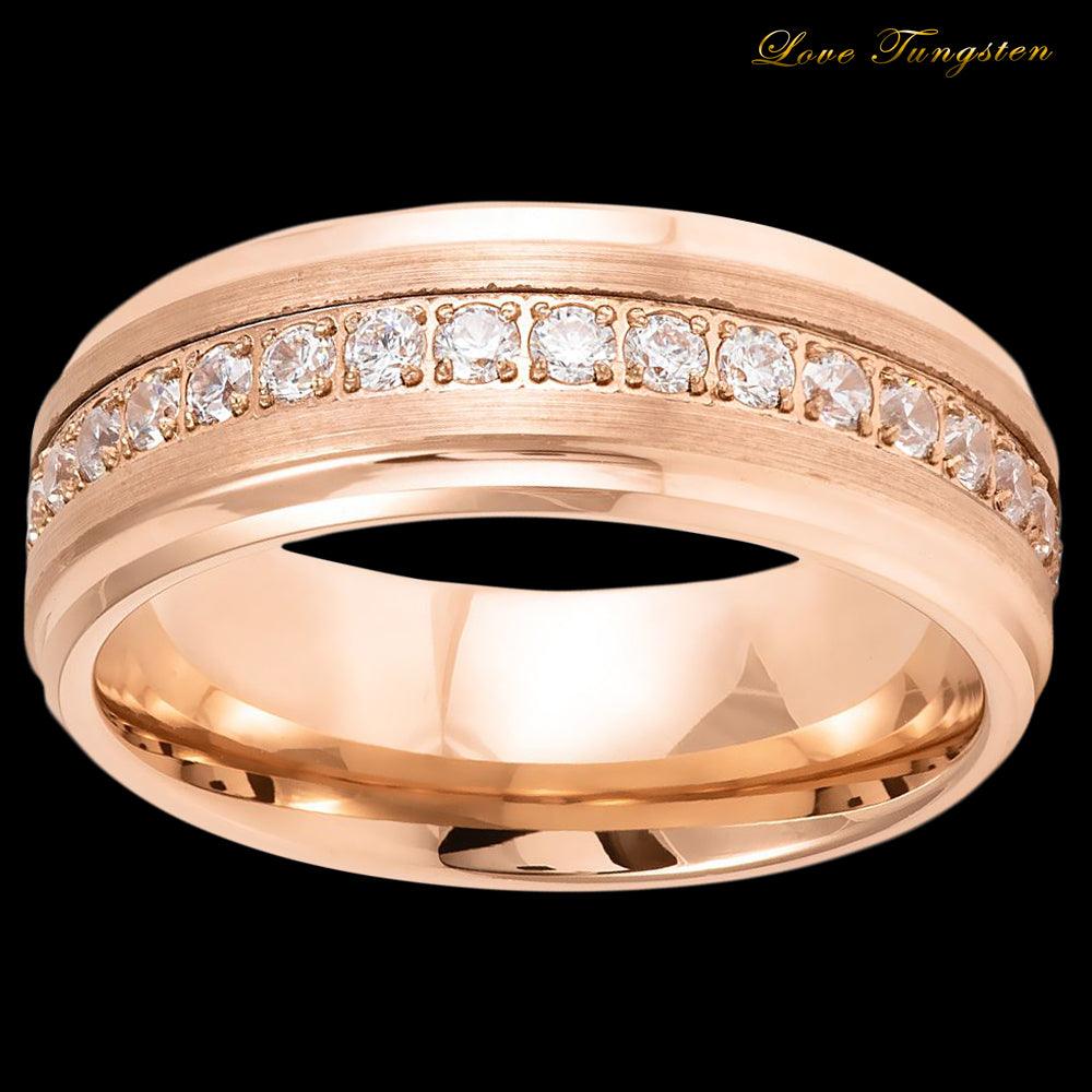 Embrace Timeless Elegance with our 8mm Rose Gold IP White CZ Tungsten Ring