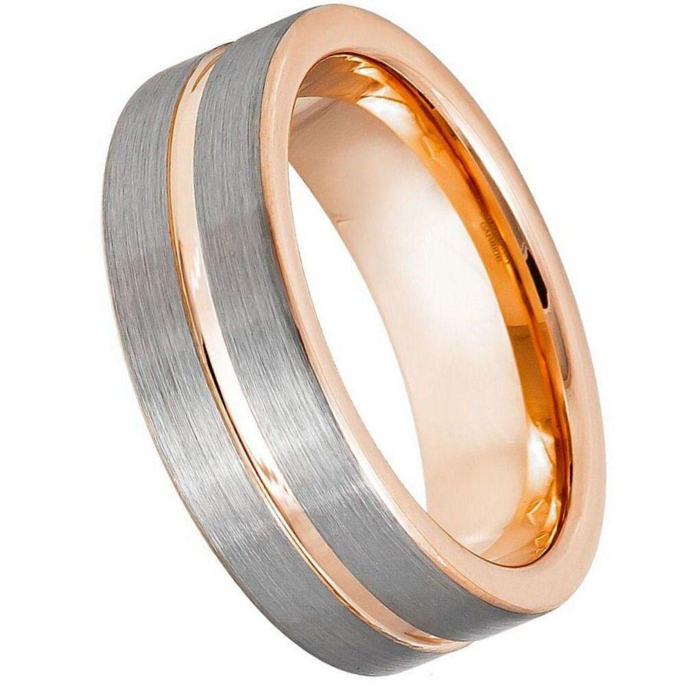 Experience the Perfect Blend of Style and Durability with Our 8mm Two-Tone Rose Gold IP Tungsten Ring