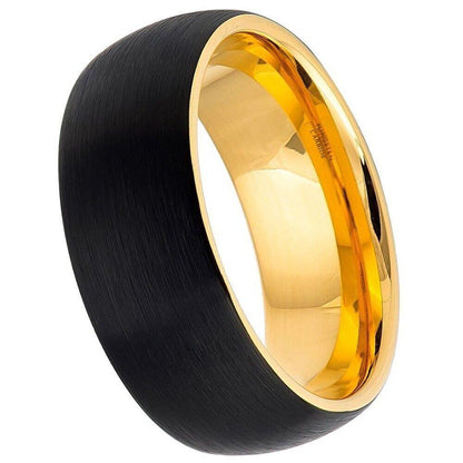 Elevate Your Style with Our 8mm Two-tone Yellow IP & Brushed Black IP Dome Tungsten Ring