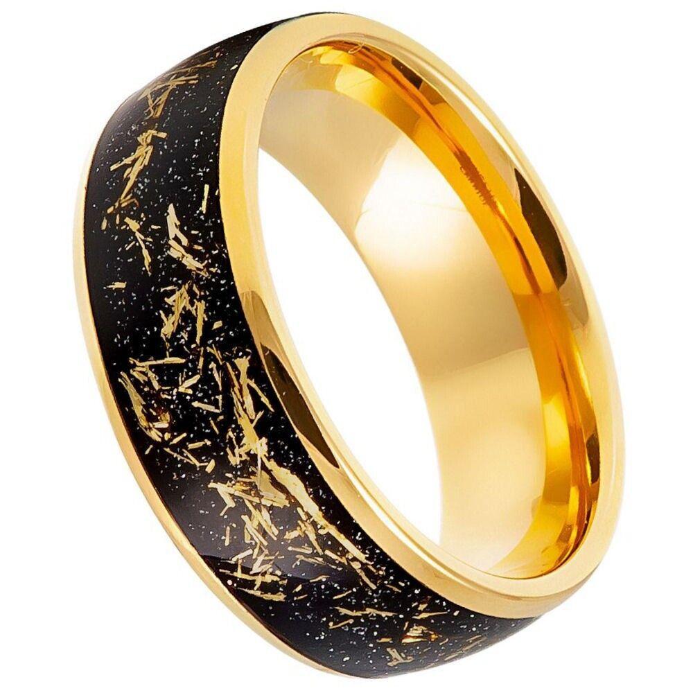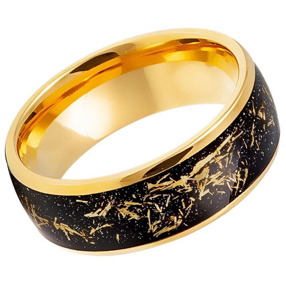 Domed Ring with Imitation Meteorite Yellow Gold IP Plated Tungsten Ring – 8 mm