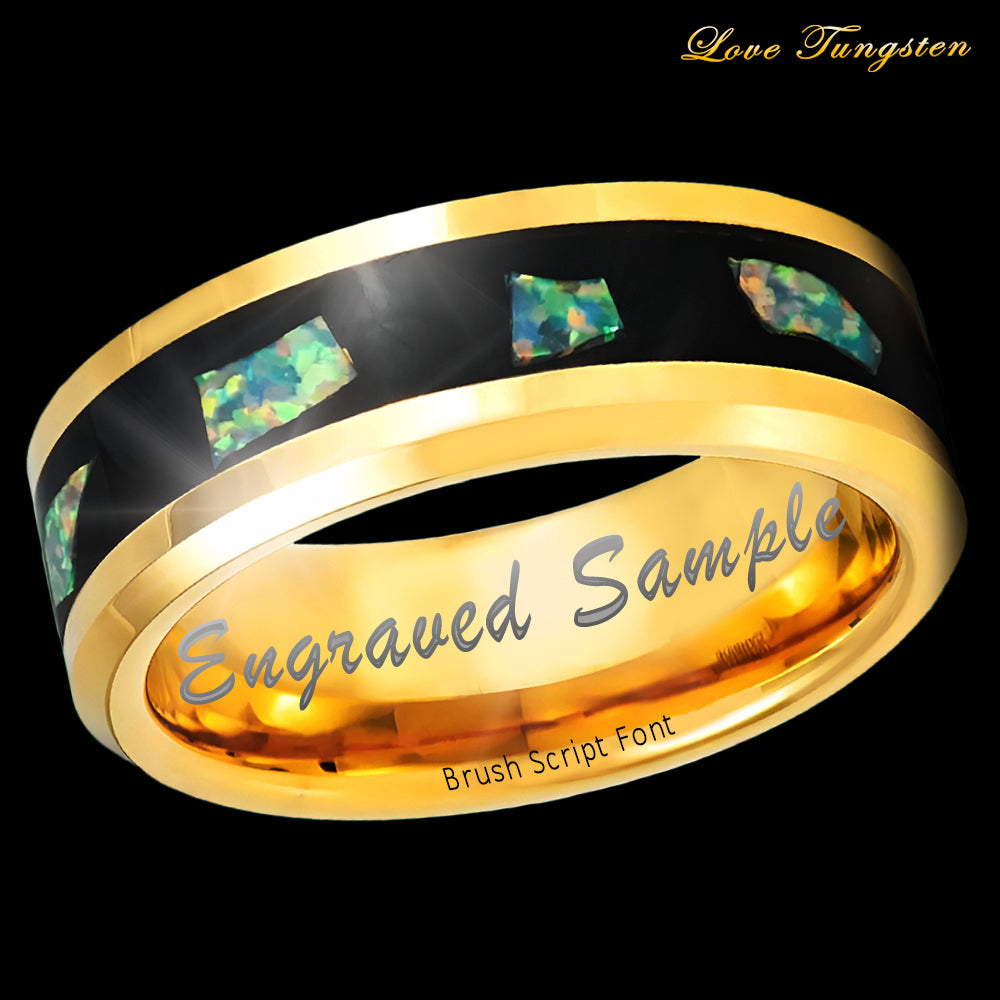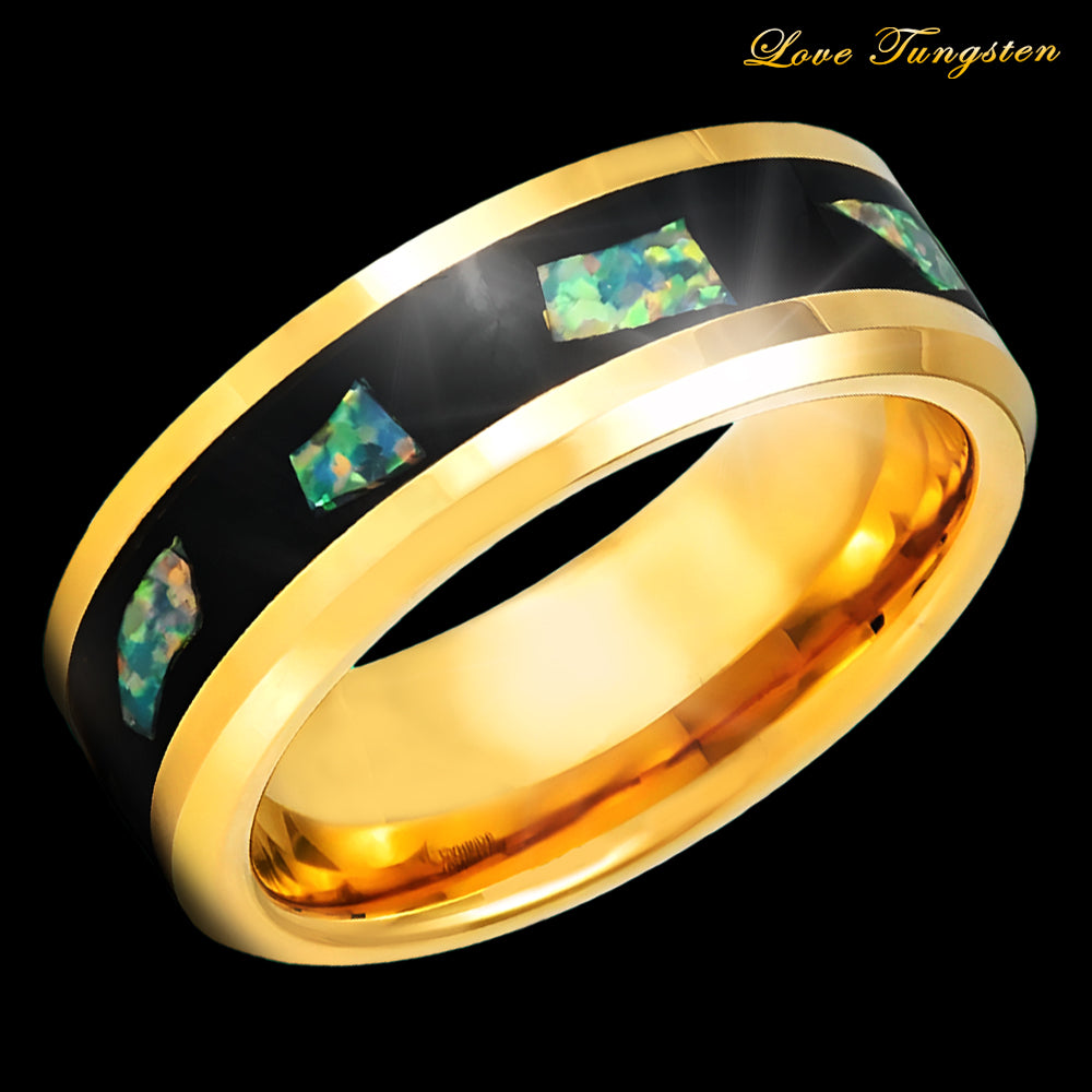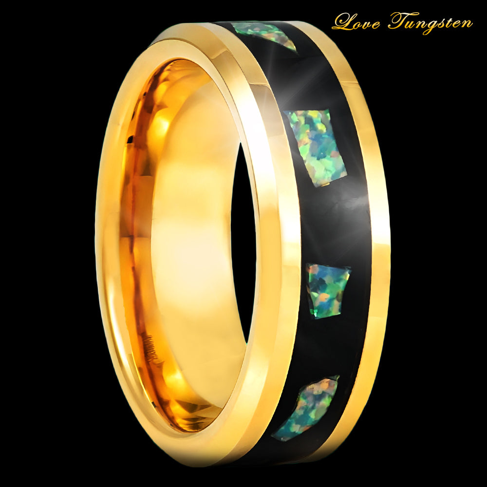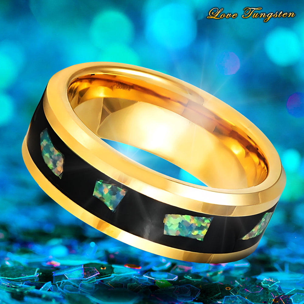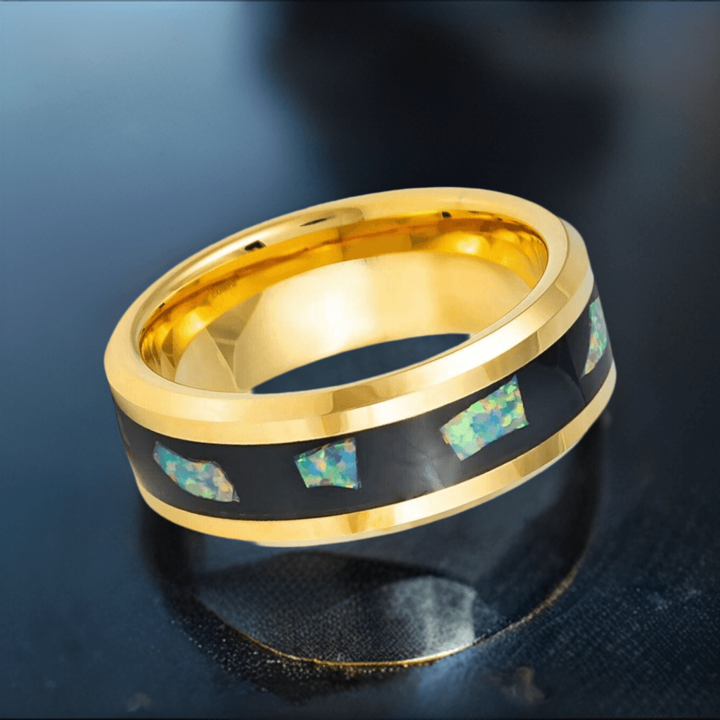 Abalone Shell Inlay Yellow Gold IP 8mm Tungsten Ring | Unique & Stylish Design