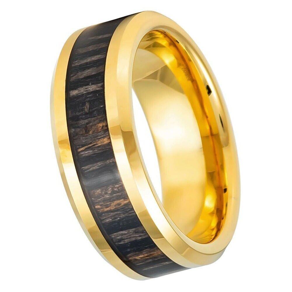 Zebra Wood Inlay Yellow IP Plated Tungsten Ring - 8mm