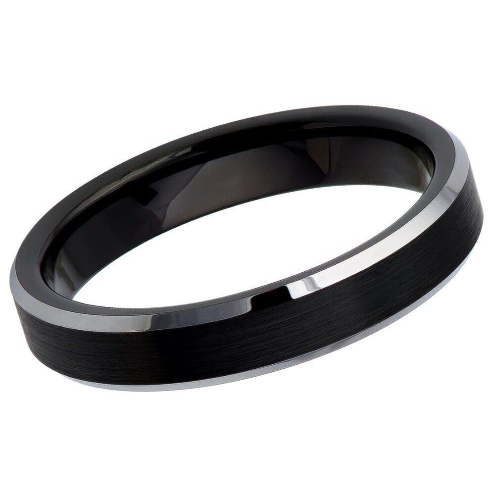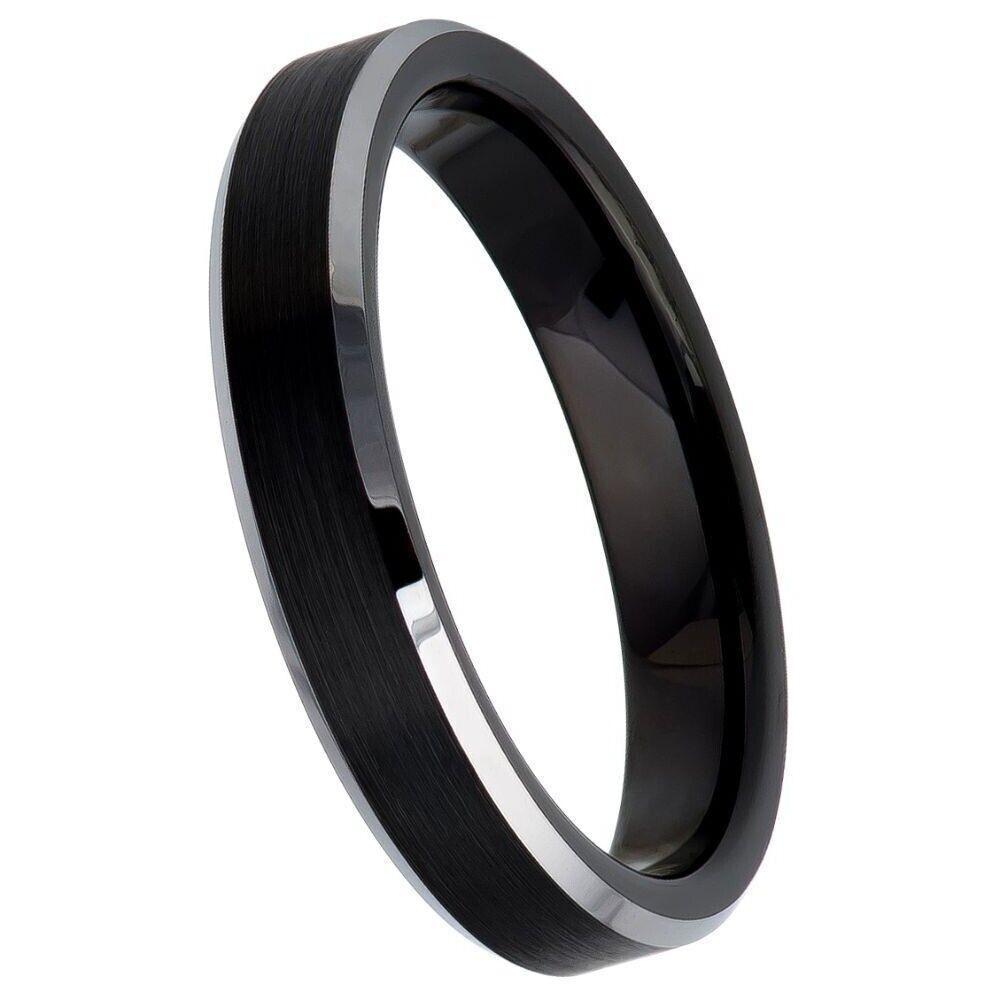 Brushed Center High Polished Steel Silver Black IP Tungsten Ring - 4mm