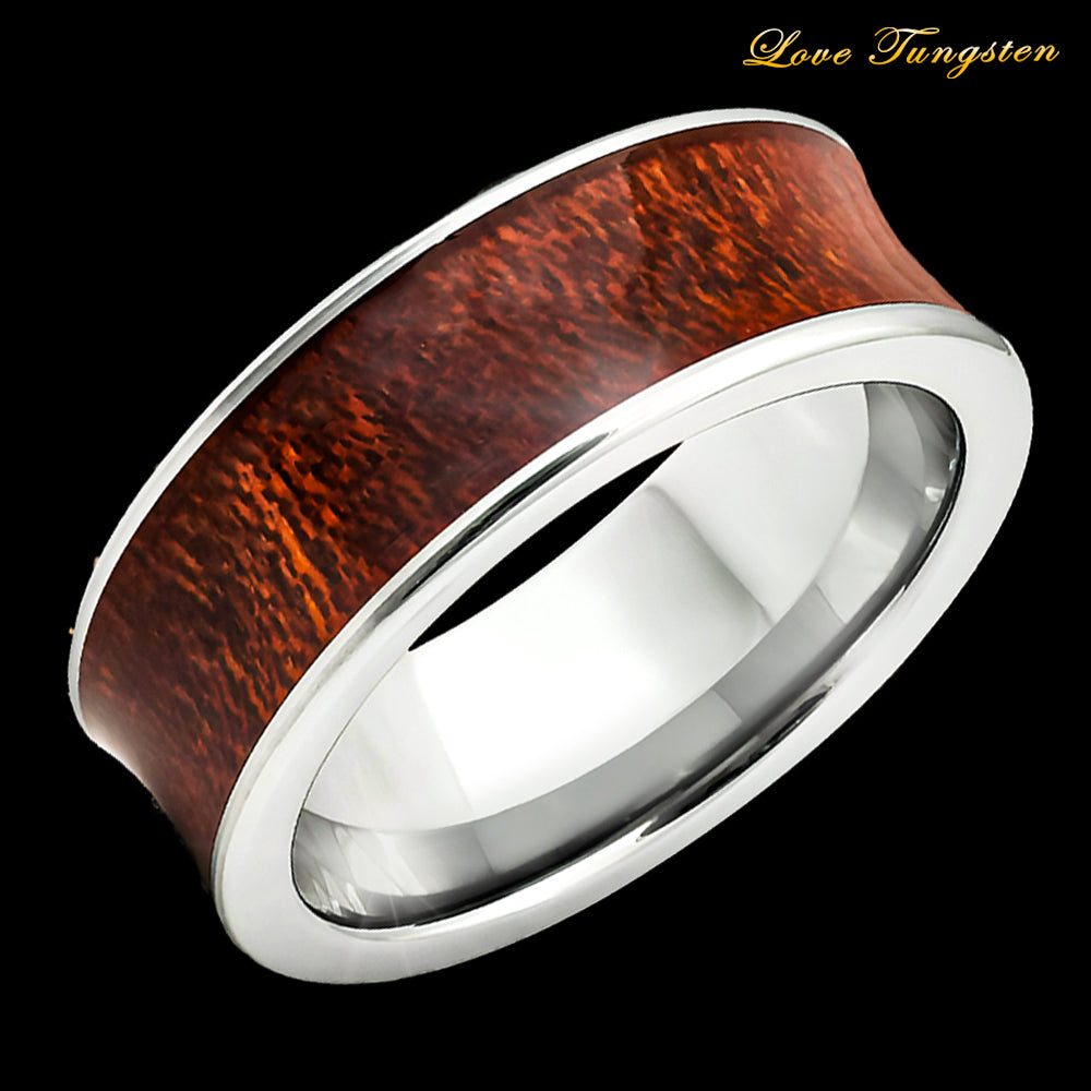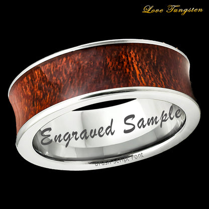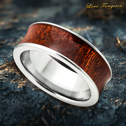 Natural Rosewood Inlay Concave 8mm Tungsten Ring