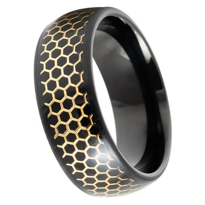 Bold and Stylish: Dome Black & Yellow Gold IP Honeycomb Inlay Tungsten Ring - 8mm