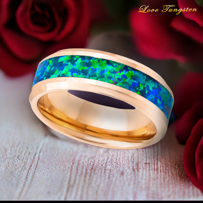 Emerald-Green Opal Inlay Rose Gold IP Plated Tungsten Ring - 8mm