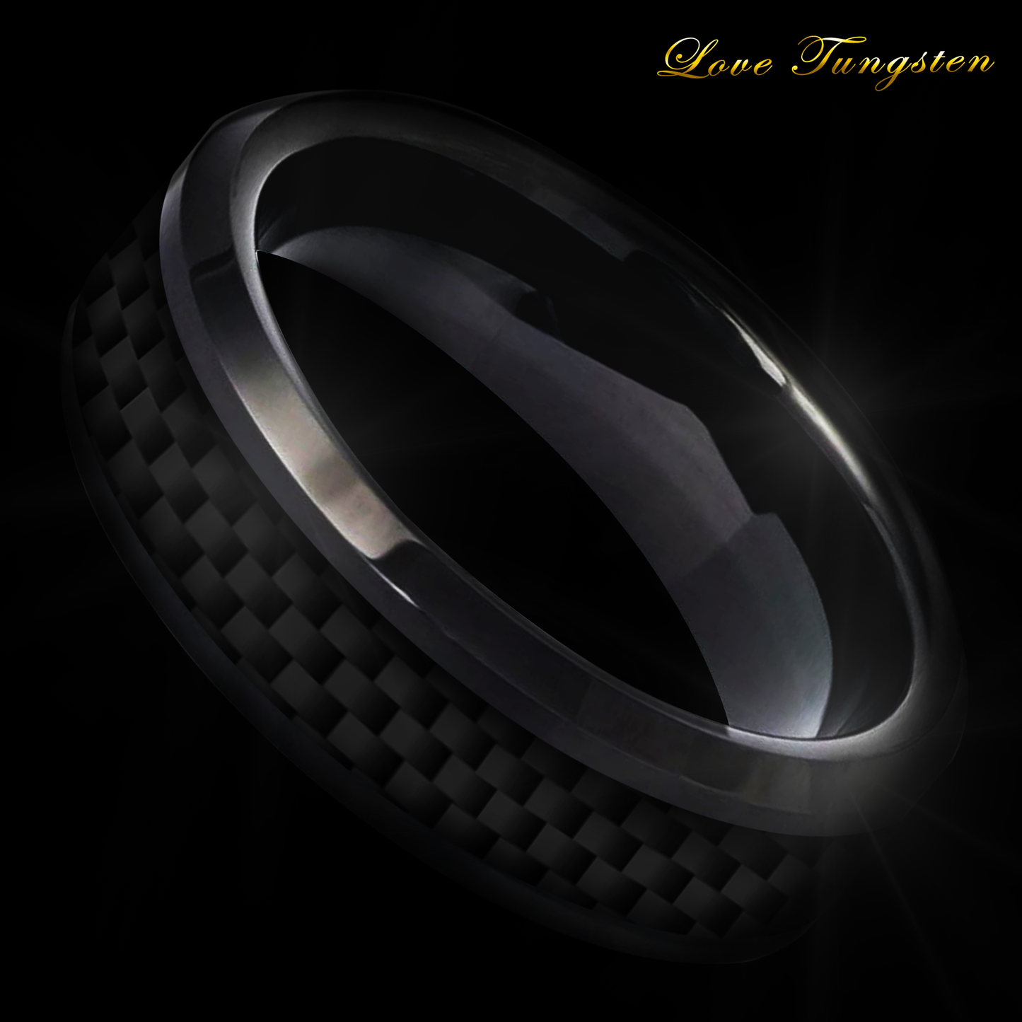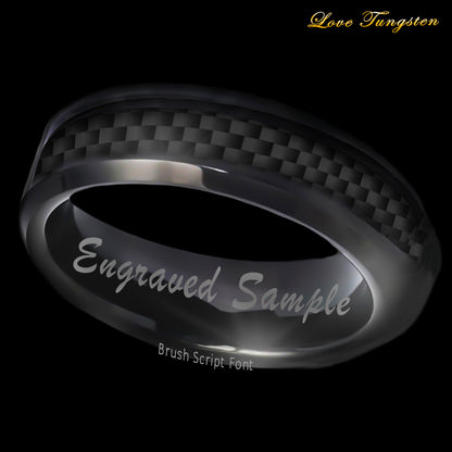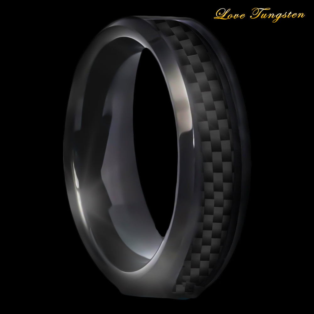 6mm Carbon Fiber Inlay Tungsten Ring | High Polished Black IP Finish | Love Tungsten