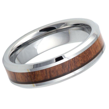 Mahogany Wood Inlay Beveled Edge Tungsten Ring - 6mm