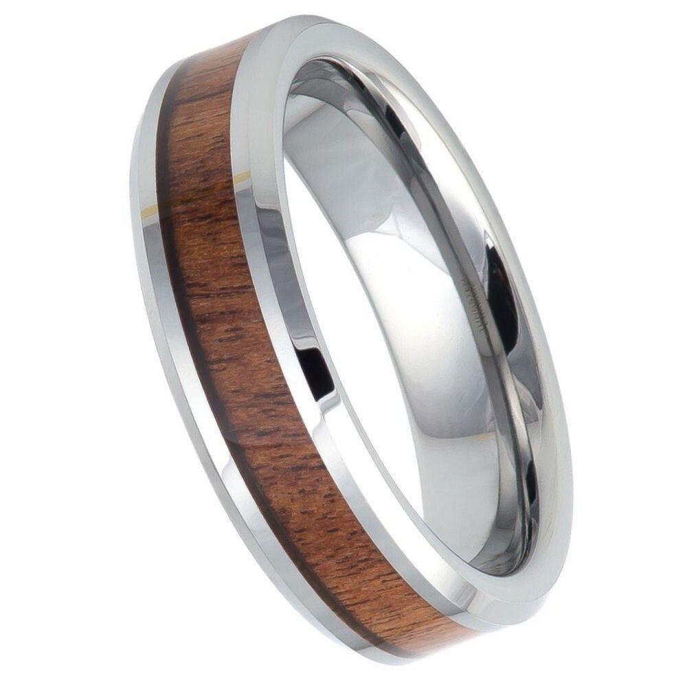 Unveil Timeless Elegance: 6mm Mahogany Wood Inlay Tungsten Ring with Beveled Edge