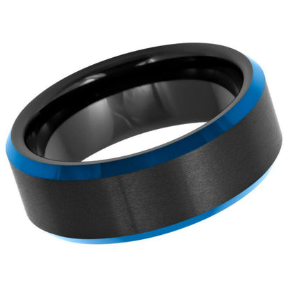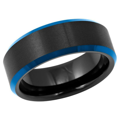 Men's Women's Blue Beveled Edged Black IP Tungsten Ring - 8mm
