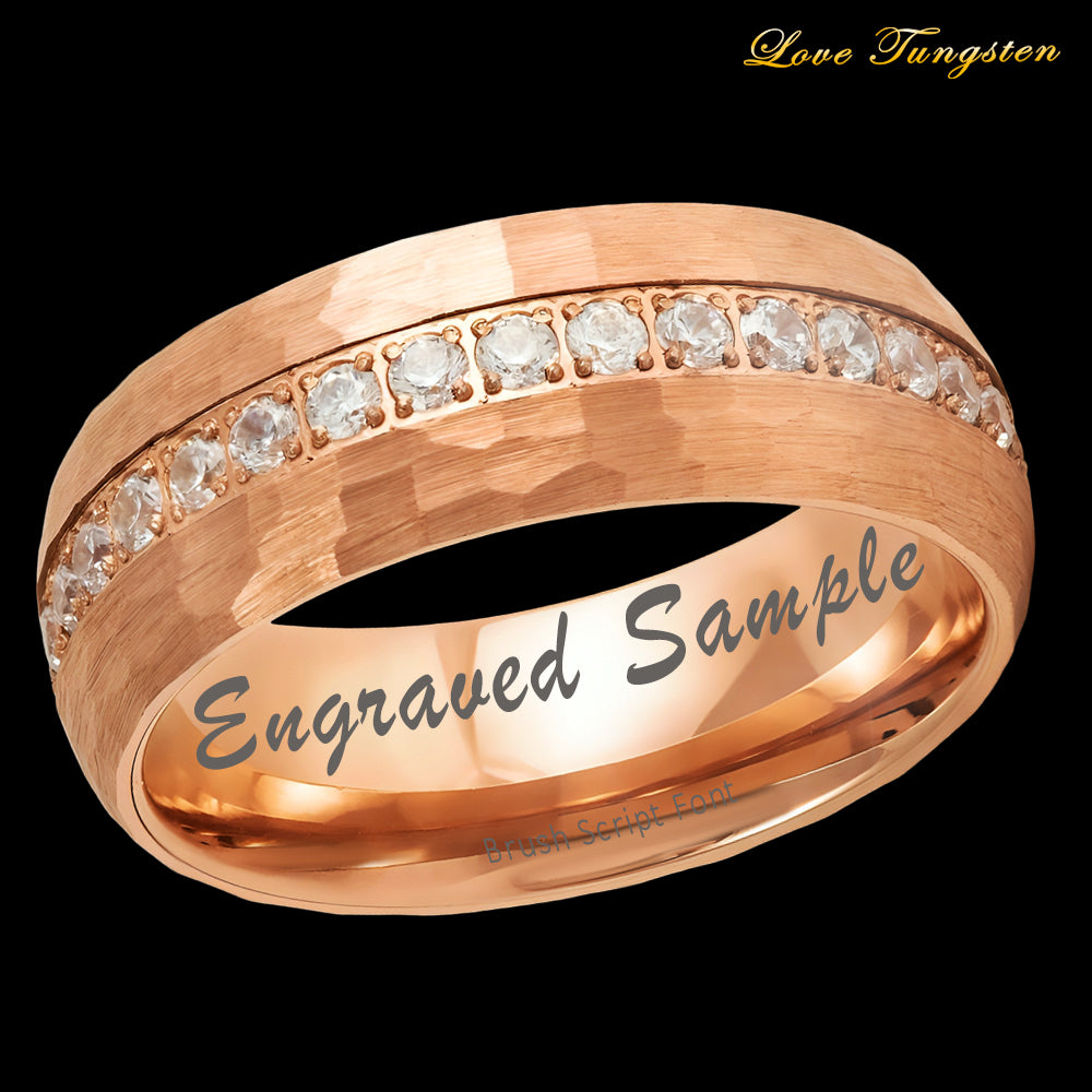 Make a Statement with Our 8mm Rose Gold IP Tungsten Ring: Sparkling Prong-Set White CZ Eternity