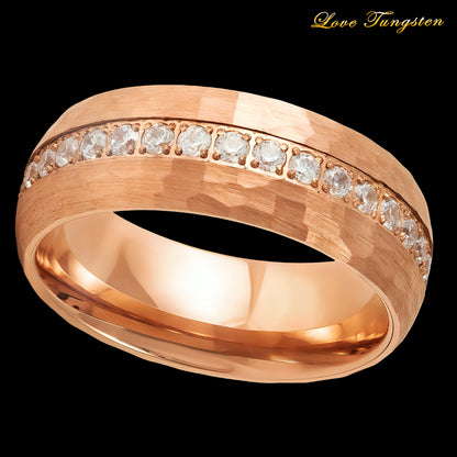 Eternity Prong-Set White CZ Stones 8mm Rose Gold IP Tungsten Ring | Enduring Beauty & Style