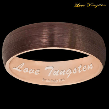 Experience the unique blend of style and sophistication with our Semi-Domed Brushed Brown IP Plated outside & Rose Gold Tungsten Ring - 6mm. The semi-domed shape adds a touch of elegance, while the brushed brown IP plating and rose gold accents create a captivating contrast.