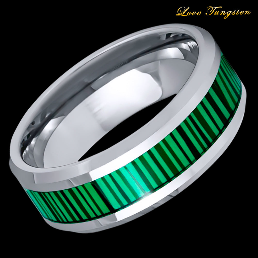 Silver Green Beveled Edge Faux Malachite Inlay Tungsten Ring - 8mm
