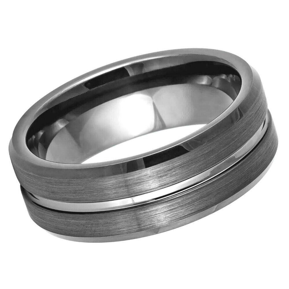 Unisex 8mm Gun Metal IP Tungsten Ring - Bold Design, Timeless Style