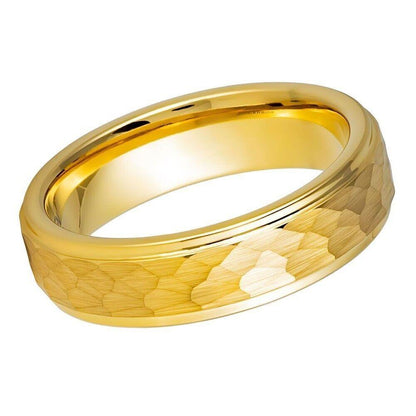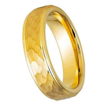 Elevate Your Style with Our Yellow IP Plated Hammered Center Tungsten Ring - 6mm